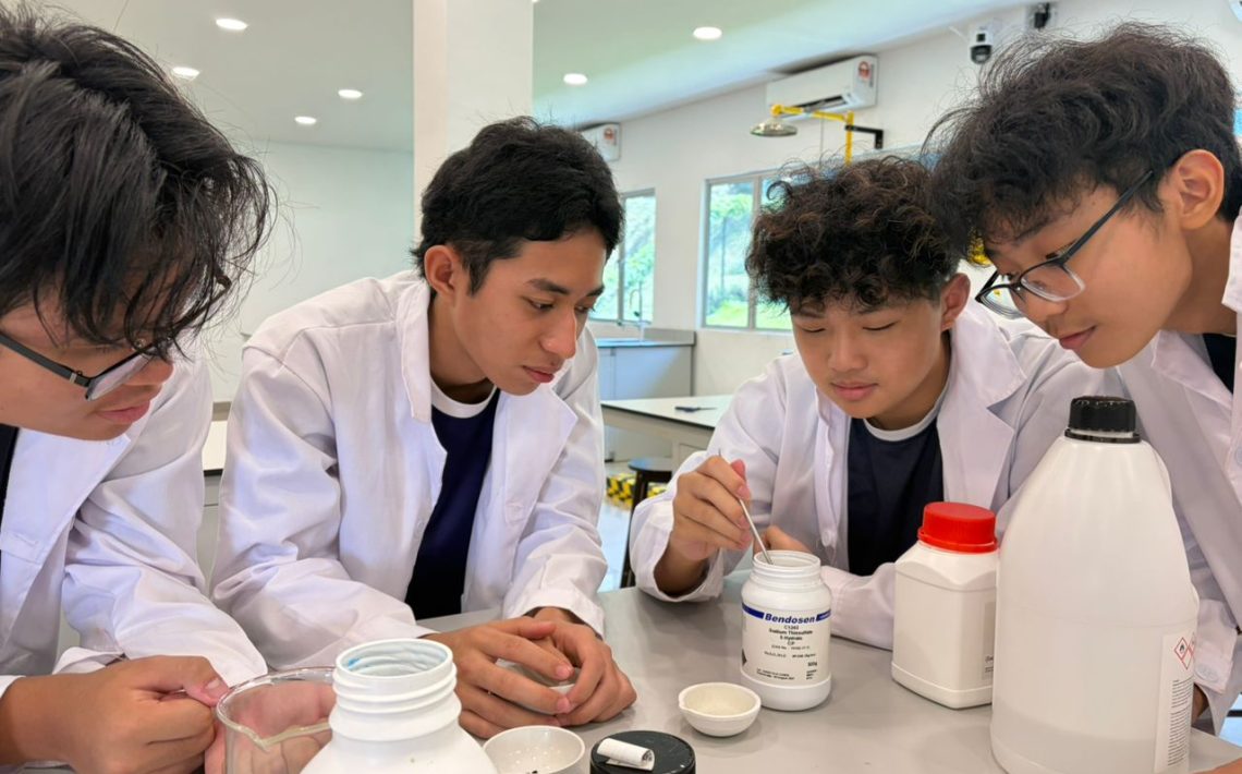 A colourful chemistry experiment where our IGCSE students discovered how different copper compounds light up the flame with the same blue-green glow!
